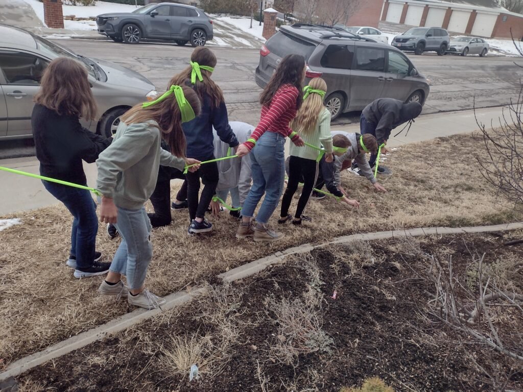 The first time through the Tuesday morning team building challenge, the Middle Schoolers pushed, pulled, yelled and even hit one another as they made their way blindfolded outside.