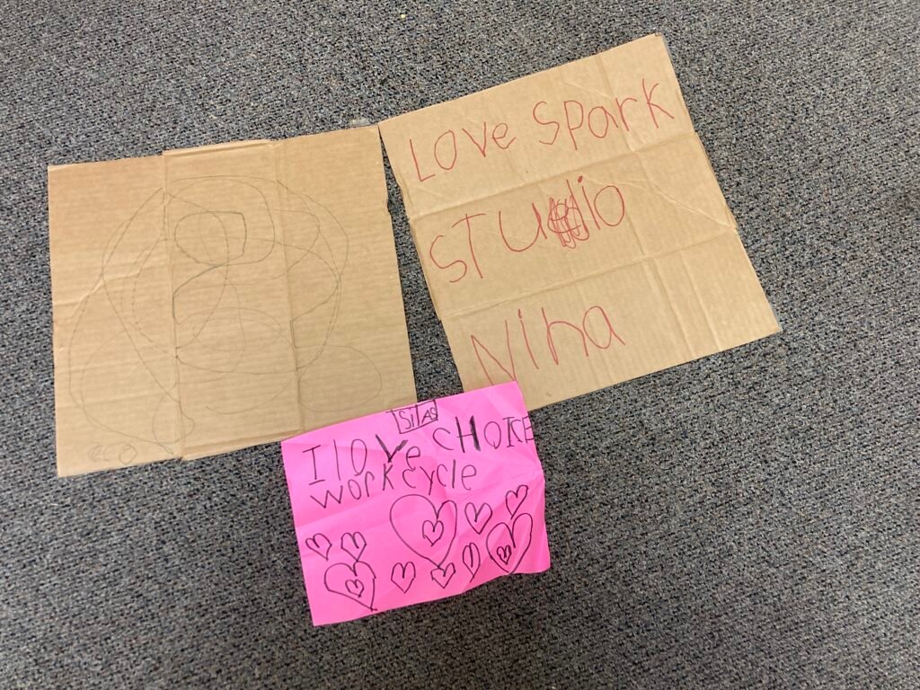 Another high came as Mr. Paul gave the heroes the opportunity to customize their CHOICE shirts. The Spark heroes didn’t need him to guide them through how to decide how to share the paints. The heroes had the confidence to direct their own brainstorming, and then led a vote to determine how they would do it – no adults necessary!