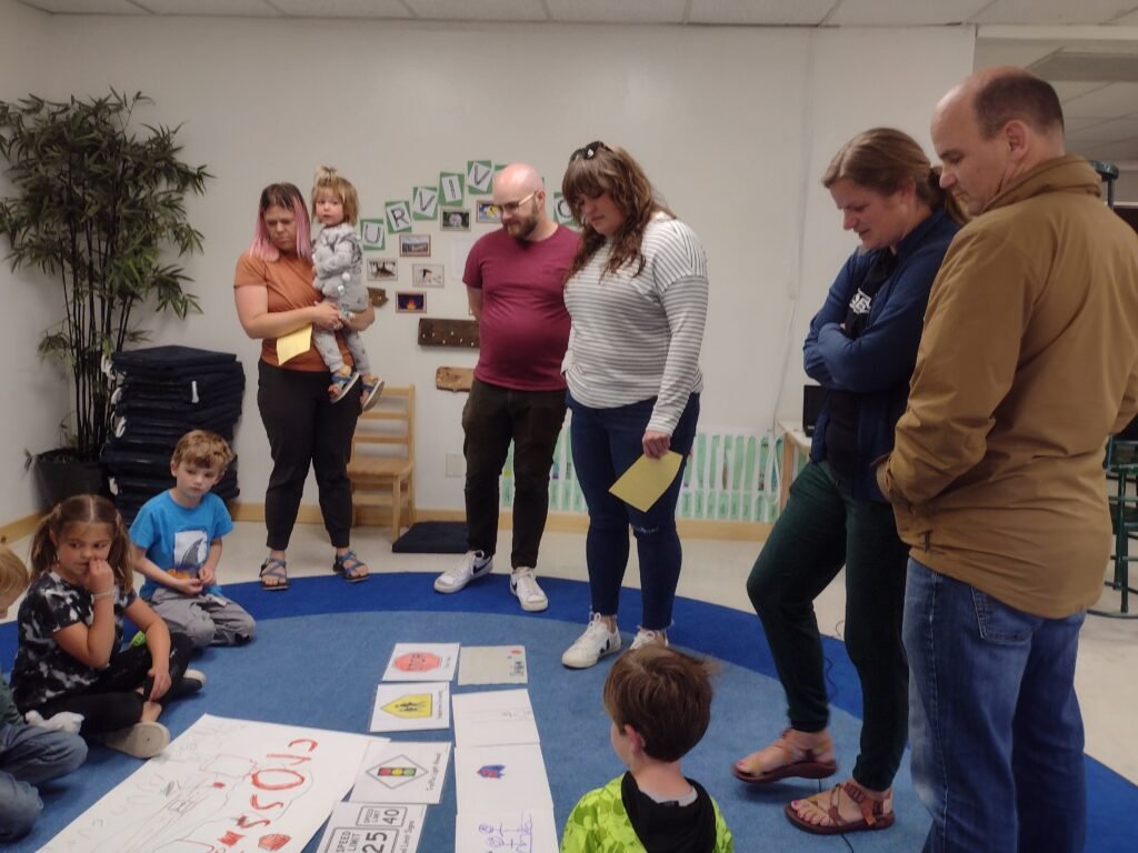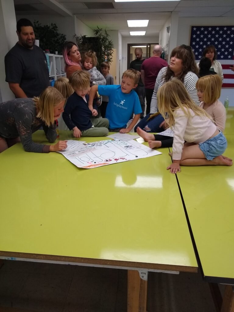 In the Fire Studio… The heroes each chose one of their favorite newly acquired skills, and created a station where their parents could learn and do a challenge:
