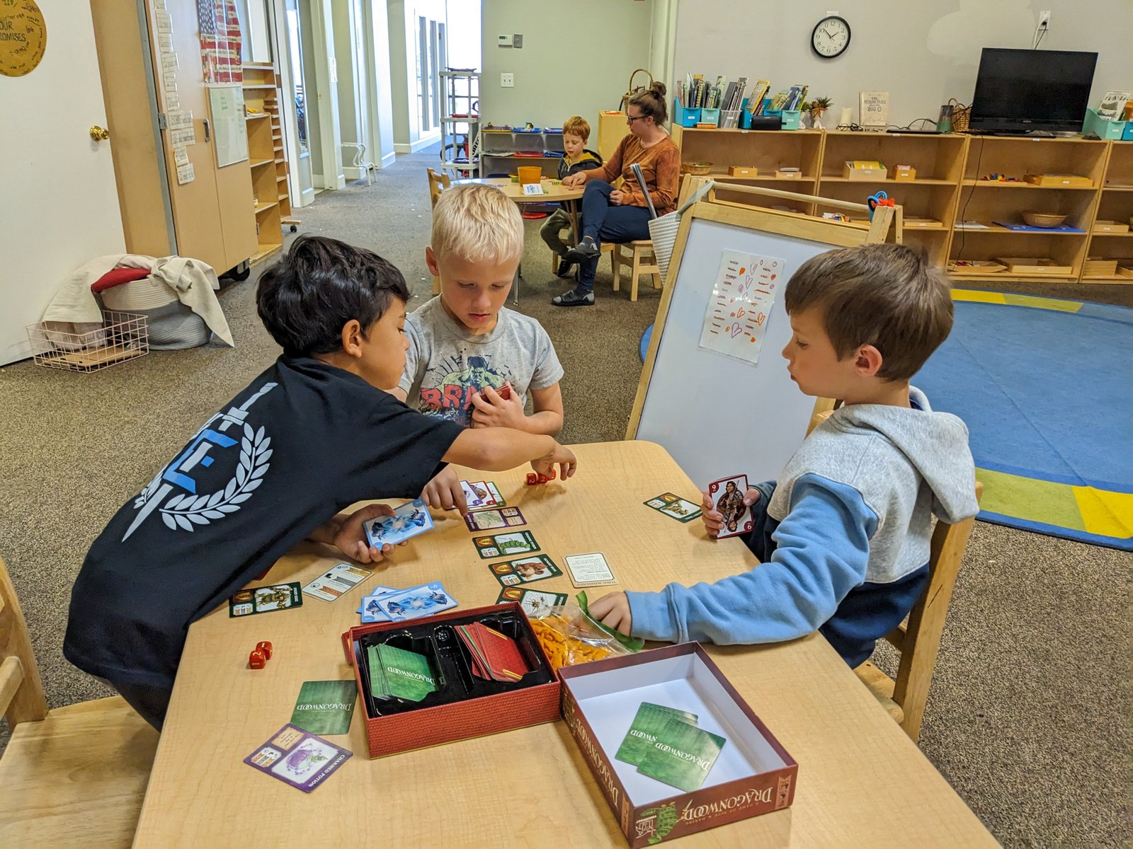 As the newness of new session materials faded, the heroes noticed the new card games available, and started learning them. It is a joy to watch heroes helping each other learn the game rules and share strategies.