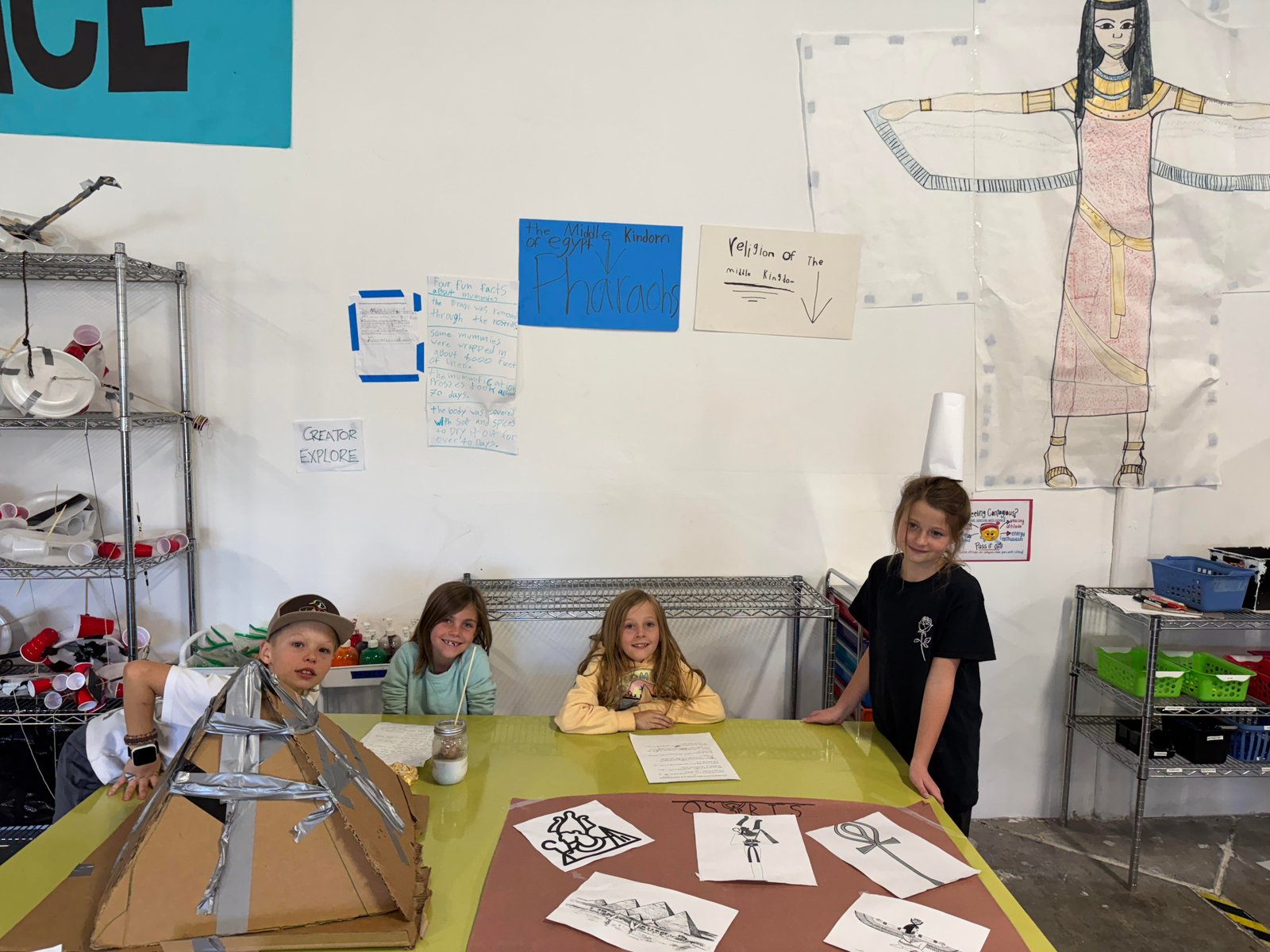 Although the New Kingdom got the most votes, most of us left wanting to time travel to the Old and Middle kingdoms as well. Heroes created pyramids, temples, tombs, mummies, costumes, drawings, and many more interesting things to put on display. They also prepared speeches and oral presentations with the pros of their kingdom and the cons of the other 2 kingdoms. It was very exciting!