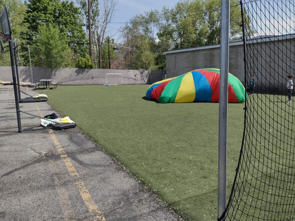 The super fun, albeit a little painful parachute game “lifeguard.”