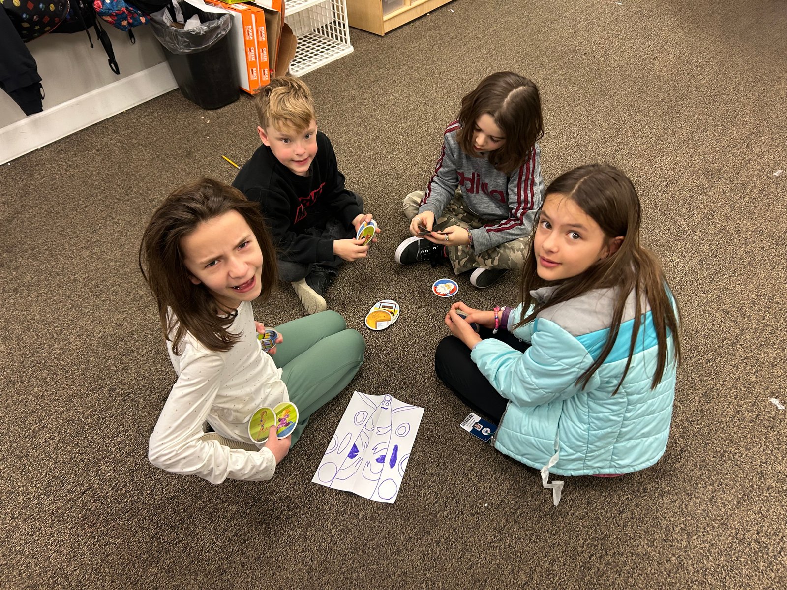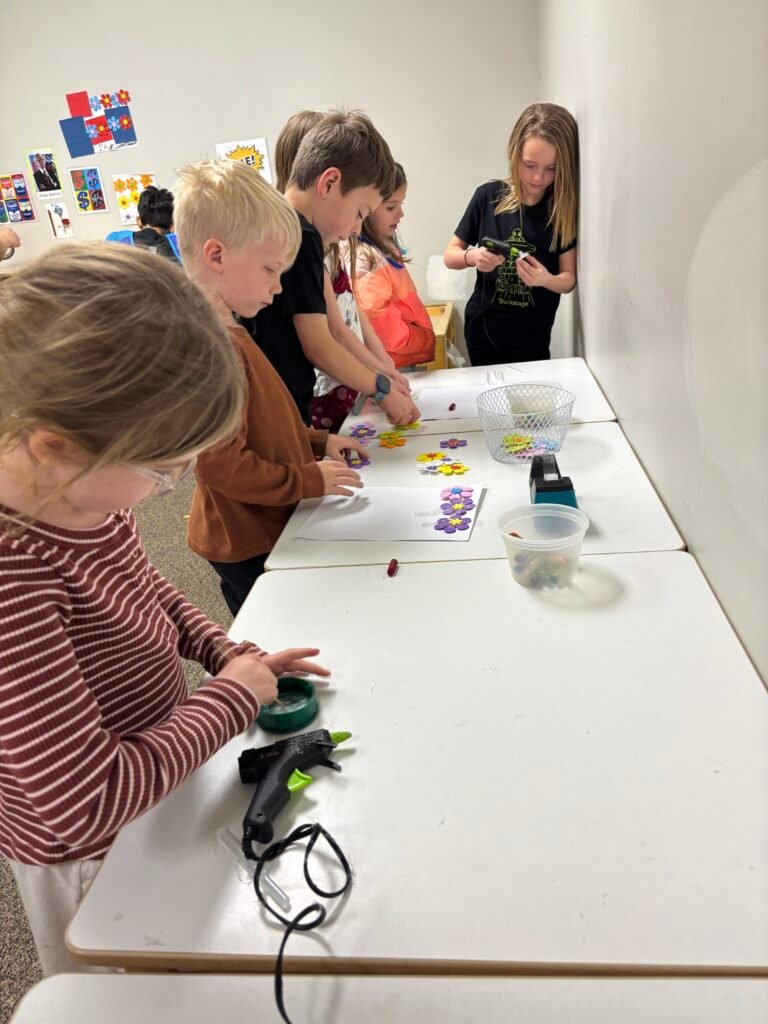 Two heroes created an item to “sell” using upcycled bottle caps and hot glue. Many heroes lined up to get one!