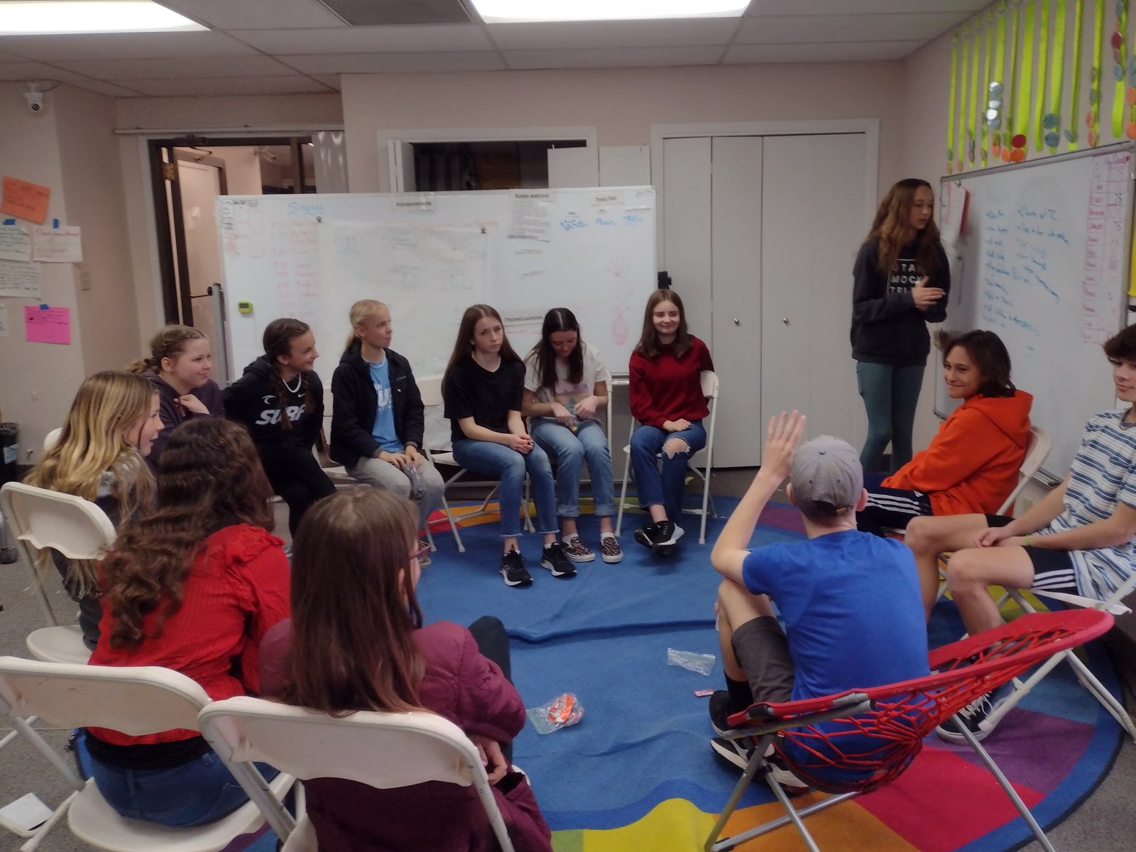 The Fire Studio and Middle Schoolers ended their session with a walk to Splay and then a walk to the park. It was uplifting to watch the Middle Schoolers guide each Fire Studio in measuring their feet, lacing shoes and getting a new pair of Splay Shoes (so kindly donated by Splay Shoes!).