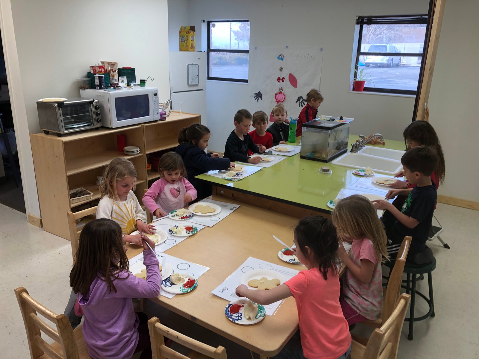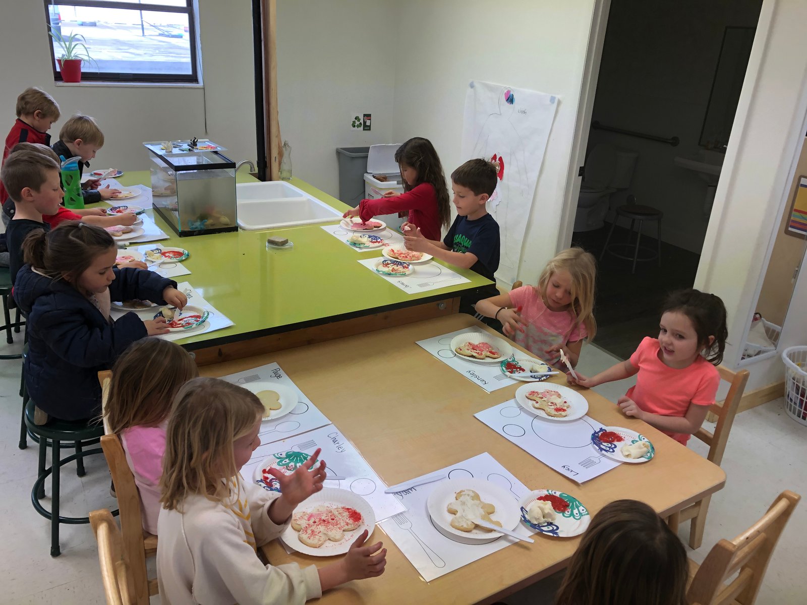 Thursday afternoon we had a Valentine’s Day party and decorated cookies like anatomy models. As excited as they were about that, many of the heroes were even more excited about hanging streamers and scrubbing the floor for the exhibition. They enjoyed cleaning so much that they ended up also cleaning in the Elementary Studio and I had to tell them to put their rags away at the end of the day!