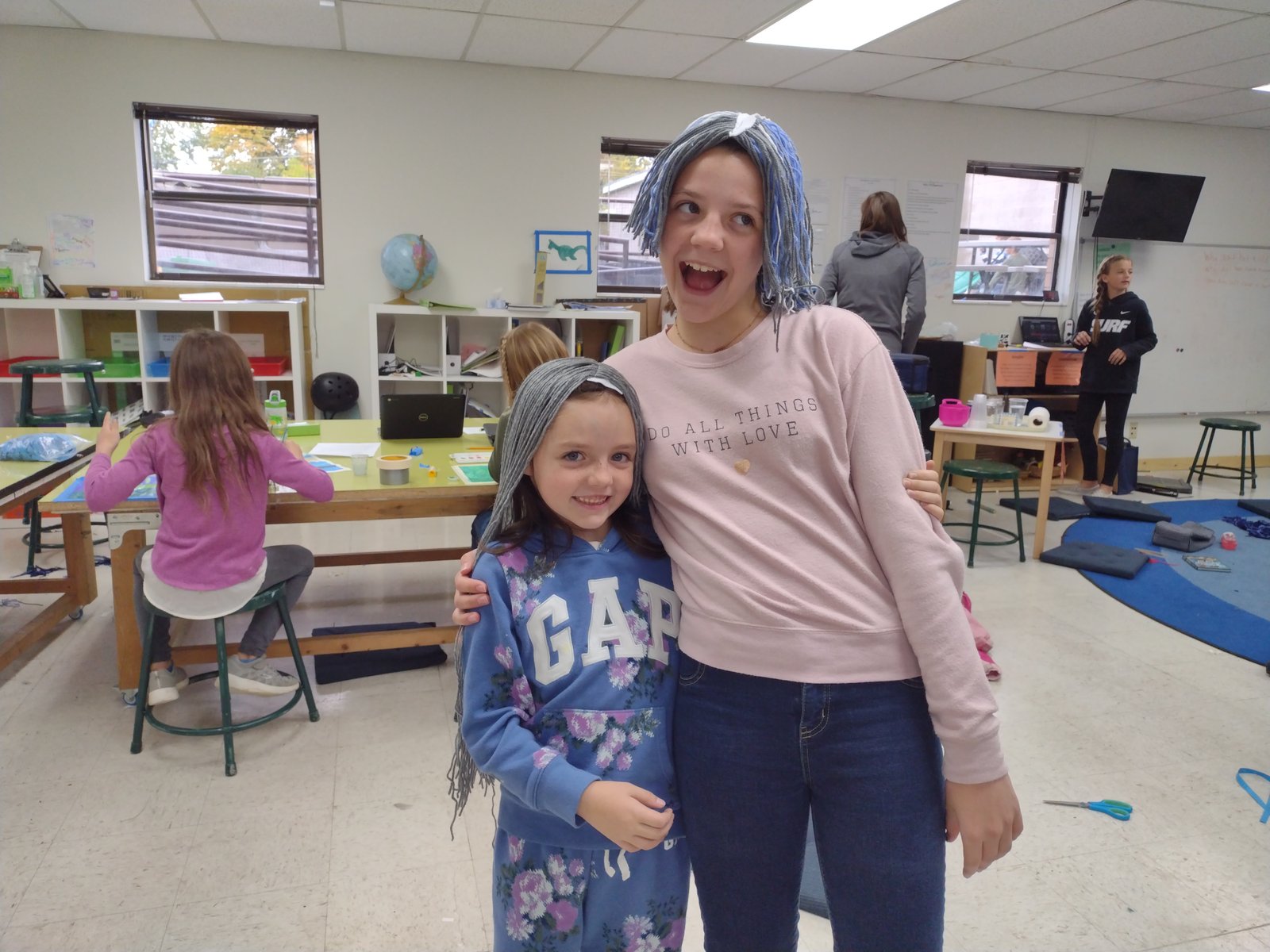 During Civ, the heroes deepened their understanding about Clovis uniting the Franks, and the Salic law against name calling. The heroes discussed whether it should be against the law to call people names. A wide range of opinions arose: from an argument that people should be able to say whatever they want, to advocating for outlawing name calling and making it punishable by death 🙂 The heroes then chose to dig deeper into one of two aspects of this period of history, either hair or archery. If they studied archery they may be able to discuss why there are pictures of Franks wielding bows but little to no archaeological evidence of bows. They also made a mini bow. The heroes who studied hair then made a yarn wig in honor of the long haired Frankish kings. Some of the wig makers showed some mad sewing skills, and they got so into it that a few of them kept working into lunch and outside time.