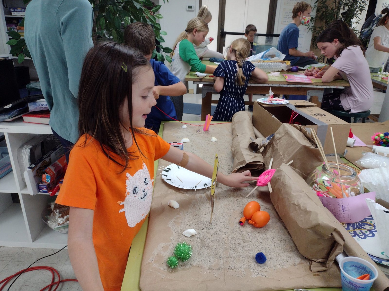 The heroes found that coral reefs are a fascinating place, whether composed of actual coral and other marine organisms, or crafted from yarn, cardboard, Q-tips, and balloons. The heroes worked in groups to study the creatures found in coral reefs and the relationships between them. Then they created awesome models of the organisms they studied. It was great to see them grow in their understanding of ecosystems and food chains as well as their collaborative skills. And creating is so much fun!
