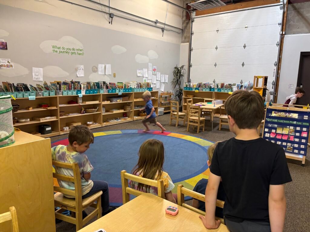 During CHOICE work cycle the learners created a new game. They time each other for 30 seconds and see how many times they can run around the discussion rug. As soon as heroes do the CHOICE work cycle challenge they race for a turn to run around the rug. Currently the record is 10 times around in 30 seconds. Such joy in a simple run!