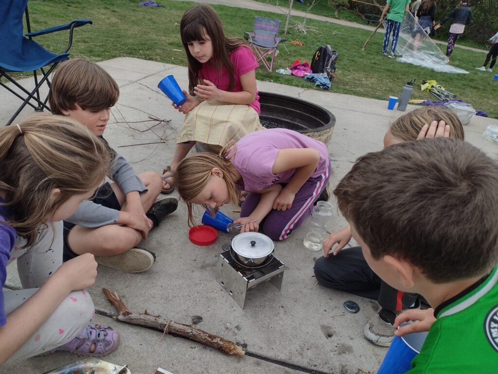 The heroes have been eager every day for the survival challenges. It’s awesome to see a topic spark their interest and lead to completely learner-driven exploration and experimentation. There have been many road blocks in their way as well. Setting up a tent correctly (and taking it down so it fits back into the sack) was no easy task for most. Building a shelter with only a tarp, natural materials and the knots they had learned – was challenging in the wind. Filtrating mucky brown pond water took a long time when it was difficult to light a match in the wind and when some of the gear didn’t work quite as expected. Building a barometer with a tin can and a balloon didn’t work the 1st, 2nd, 3rd or 4th time! The Life Point challenge of sprinting up a hill multiple times as fast as the heroes could, was very taxing physically. As we watched the heroes work hard until the challenges were completed, it was clear to see that the habit they are creating is GRIT!