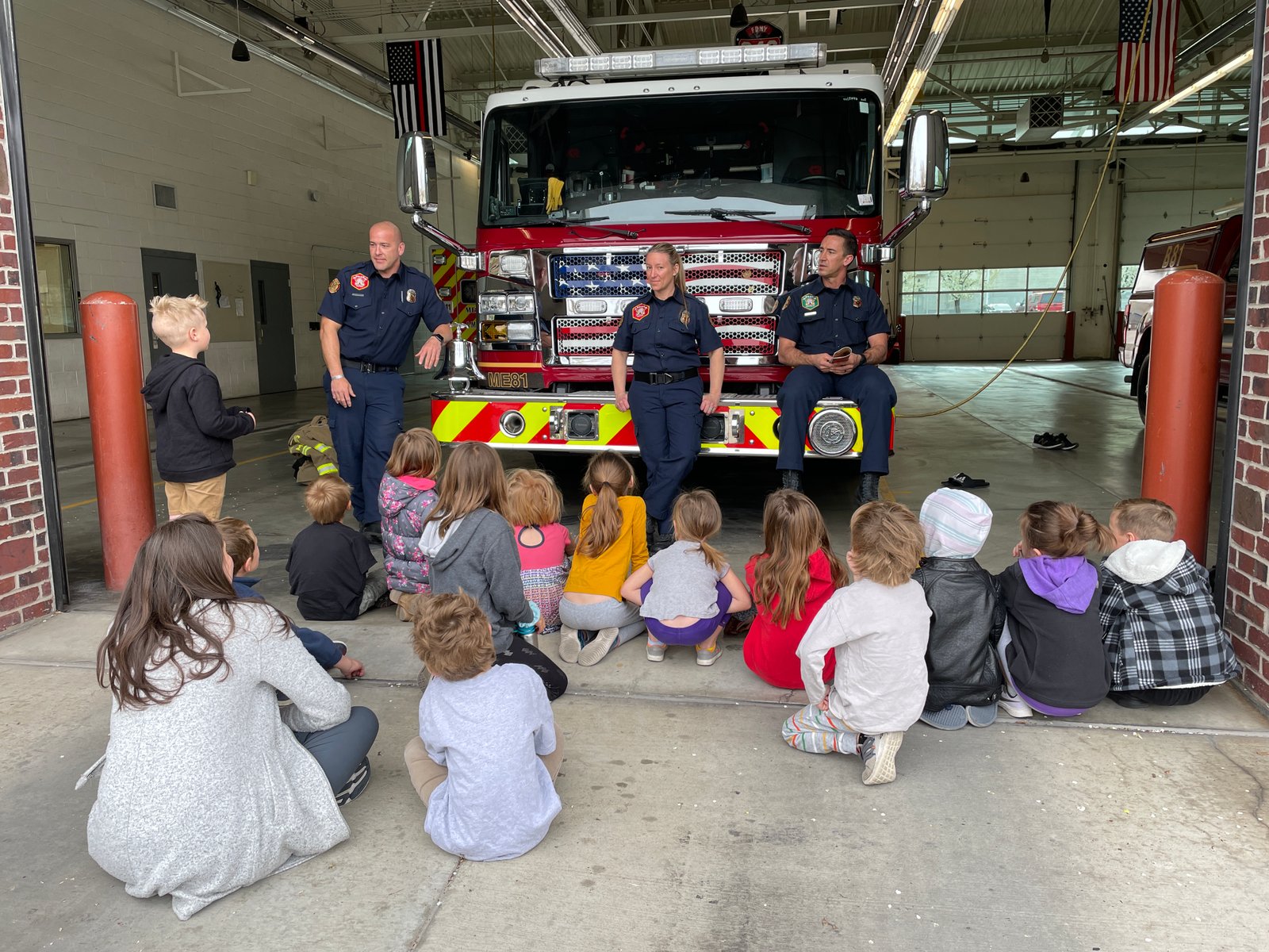 In the Spark Studio…Our week was filled with adventures! Our visit to the fire station helped encourage habits such as knowing our address and practicing fire drills. One firefighter suggested making your address into a song to aid memorization. We learned from the firefighters how important it is to have a family meeting place in case of emergency. Not only were the heroes able to physically see a firefighter with their oxygen tank face mask, but the firefighters let us hear the noises the oxygen tank makes and what each alarm means. In an emergency firefighters might look and sound scary with all their protective equipment and the noises that equipment makes. We are now better prepared to feel safe when we see or hear a firefighter.
