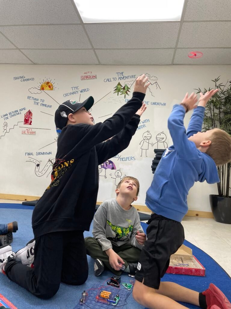 Each day the heroes are reading stories of people, often children, who’ve been displaced and are completing challenges that will hopefully build their empathy and compassion. This week they experienced a lack of heat, having their food stolen, being offered only plain cooked grains when they were offered food, and overcoming dangerous journeys with injuries and corrupt smugglers along the way. All of the challenges they complete earn the whole studio funds that will be used for the service project they choose: gathering diapers and hygiene supplies for refugees.