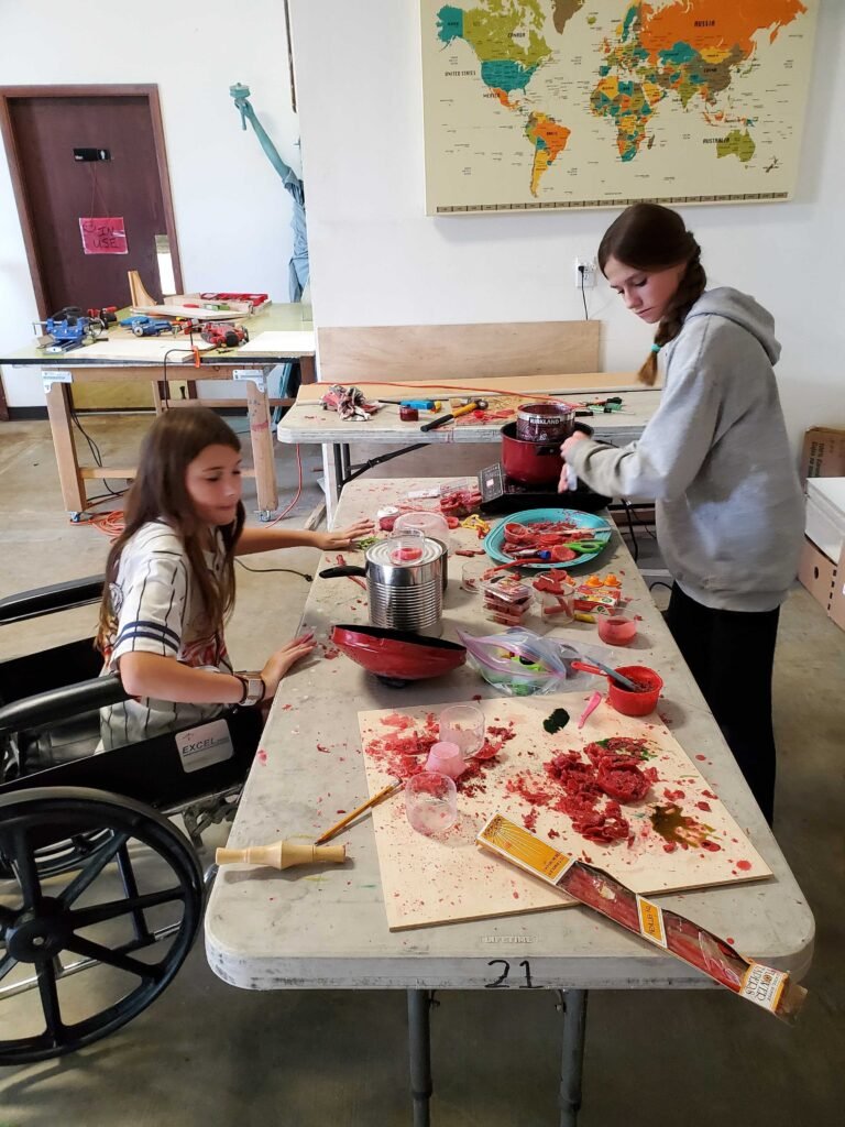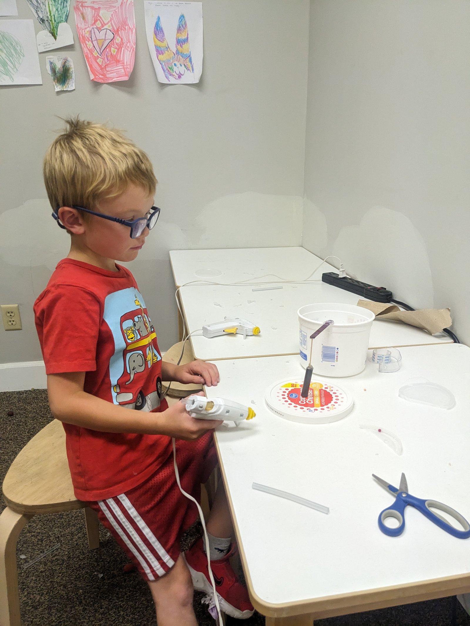3- Heroes look forward to their afternoon CHOICE work cycle. Several heroes have enjoyed the music and theater room most days, while some prefer to play card games. All heroes have found value in creating with our upcycle materials. Some of the creations include paper cutting designs, birthday cards, popsicle stick people and animals, and lots of process art and glue gun use.