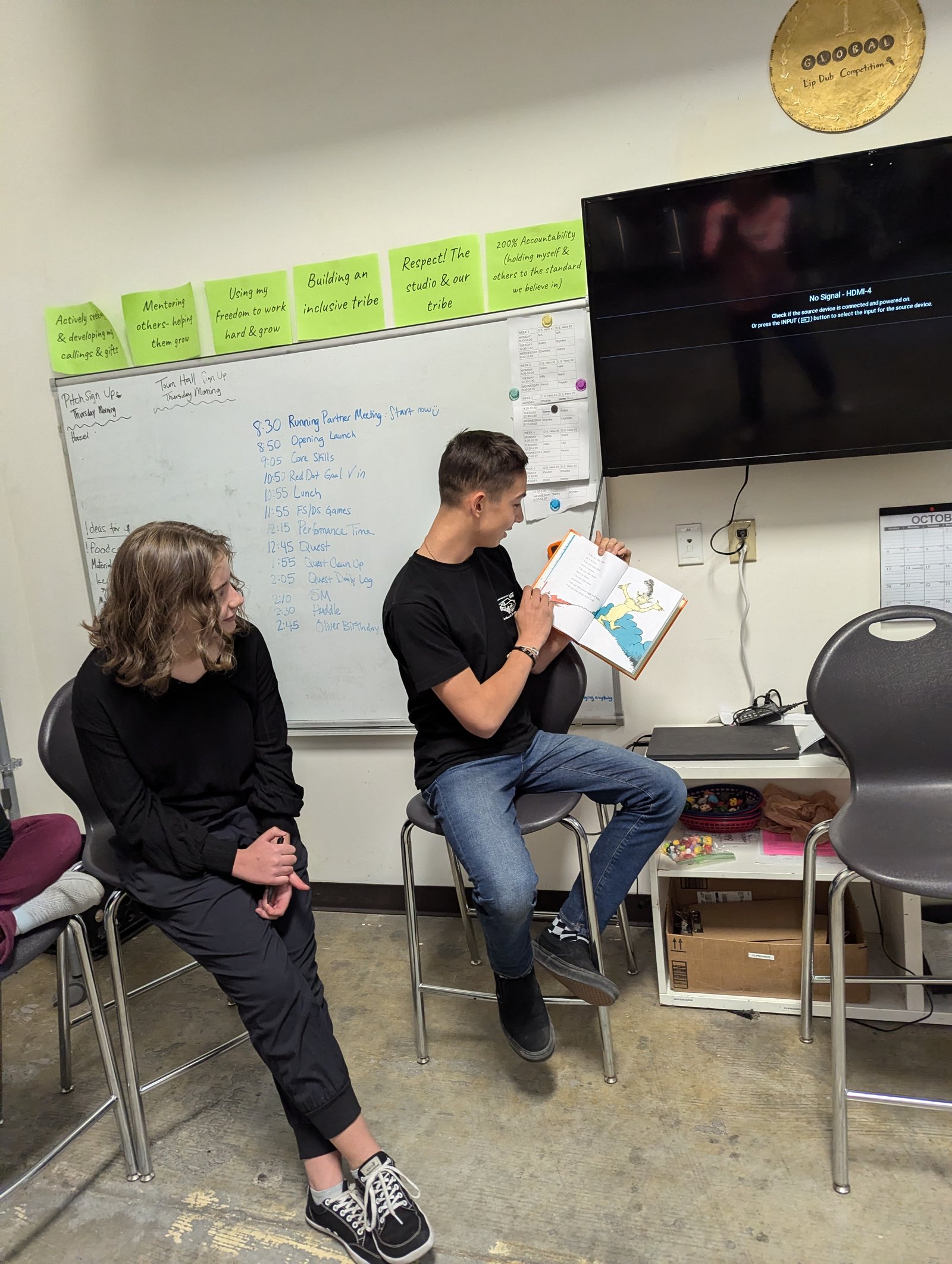 Two bigger wins from the week were an accumulation of many small wins. First, the FS Jolliness this week focused on gratitude–specifically the practice of noticing good things that tend to turn invisible when we see them all the time. A few heroes were invited to the center of the rug for the studio to re-notice things they appreciated or admired about that hero. It was a bonding and gratifying moment for the whole studio. After sitting in the center for his turn, one hero new to the school, was suddenly willing and even excited to read the apology note to the studio he had prepared for losing 4 Moolahs. Feeling the appreciation and admiration of his fellow travelers gave him appreciation and admiration for them in return! The cheers from the studio and the smile from the hero after he shared his apology note was a BIG win for everyone.