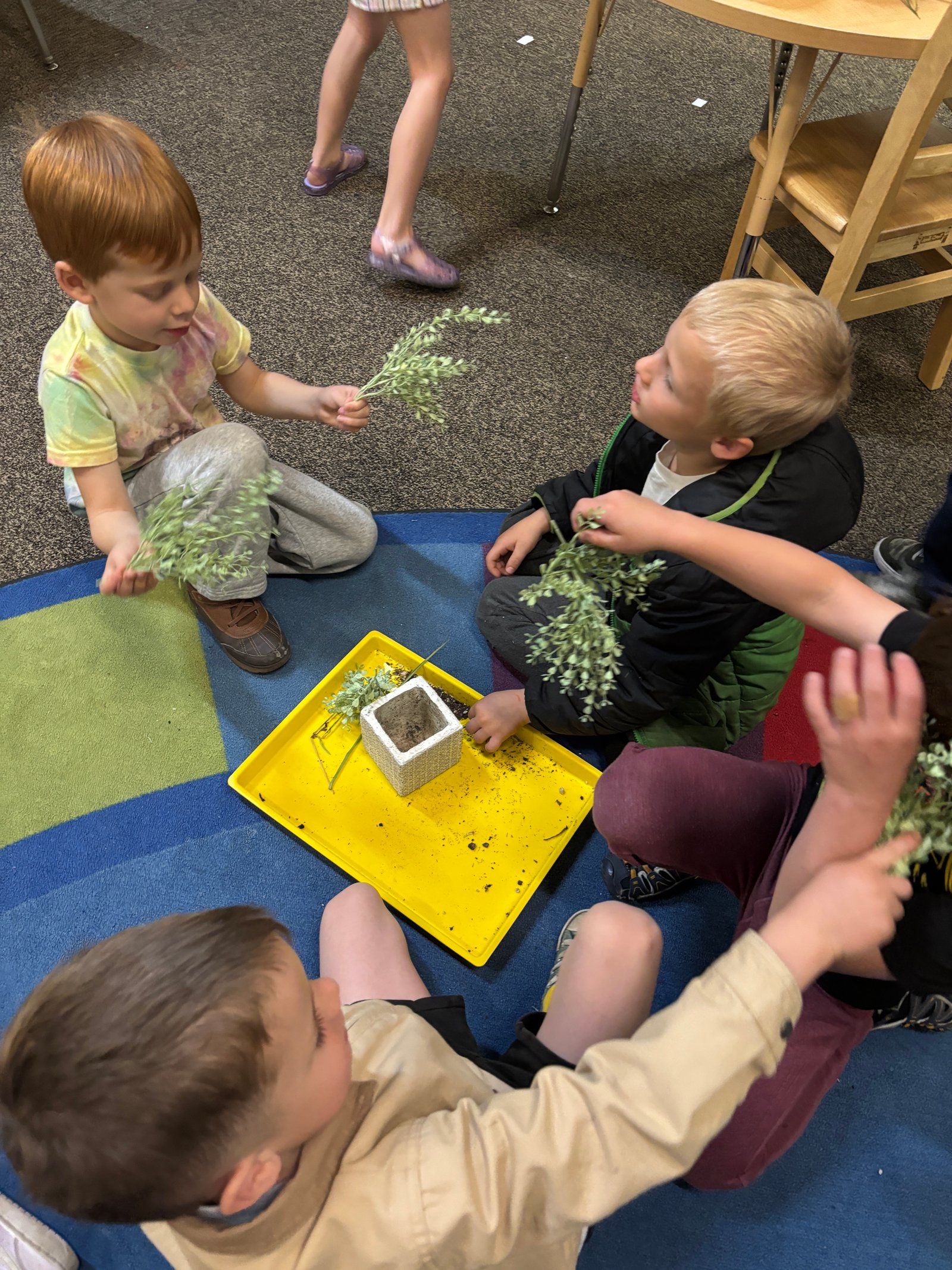 The Spark Studio kicked off this session by introducing our study of plant life…botany! The learners loved observing and exploring a collection of plants, real and fake. They are exploring the different parts of leaves, flowers, trees, and plants.