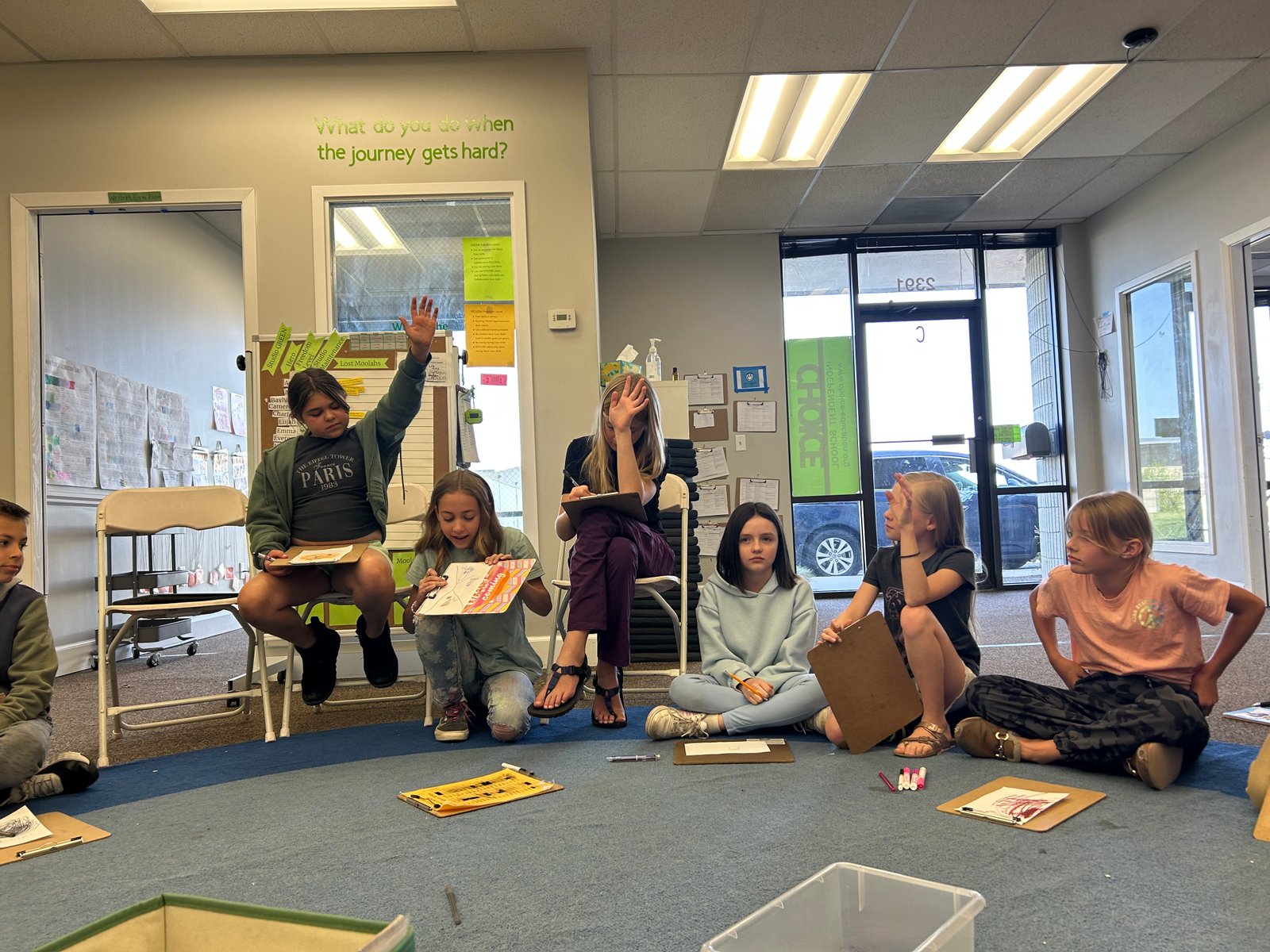Two, self-governance and responsibility. Learners are consistently rocking studio maintenance. They quickly get into their groups and clean up their materials better than ever before. Studio maintenance is an important indicator of a willingness to work hard, collaborate and take responsibility for your own space. Similarly, part of our schedule includes a 10-minute practice of phonemic awareness exercises. The guide who usually leads this was gone this week. The learners stepped up and led the exercises themselves with great success.