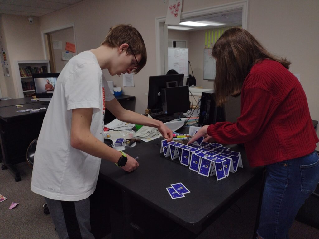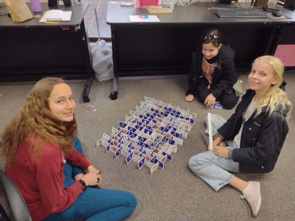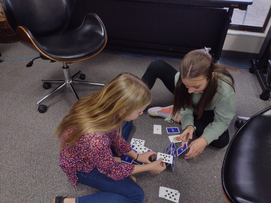 In the Middle School we began with a House of Cards challenge to work with our new Running Partners. One hero whose Running Parner was gone, at first thought he would enjoy working alone, but before too long we heard the exclamation “I wish I had more hands to help me!” Running Partners provide the heroes the opportunity to consistently be accountable to one person. They provide the opportunity to learn to communicate with and work with another hero for an extended period time. We switch Running Partners every session.