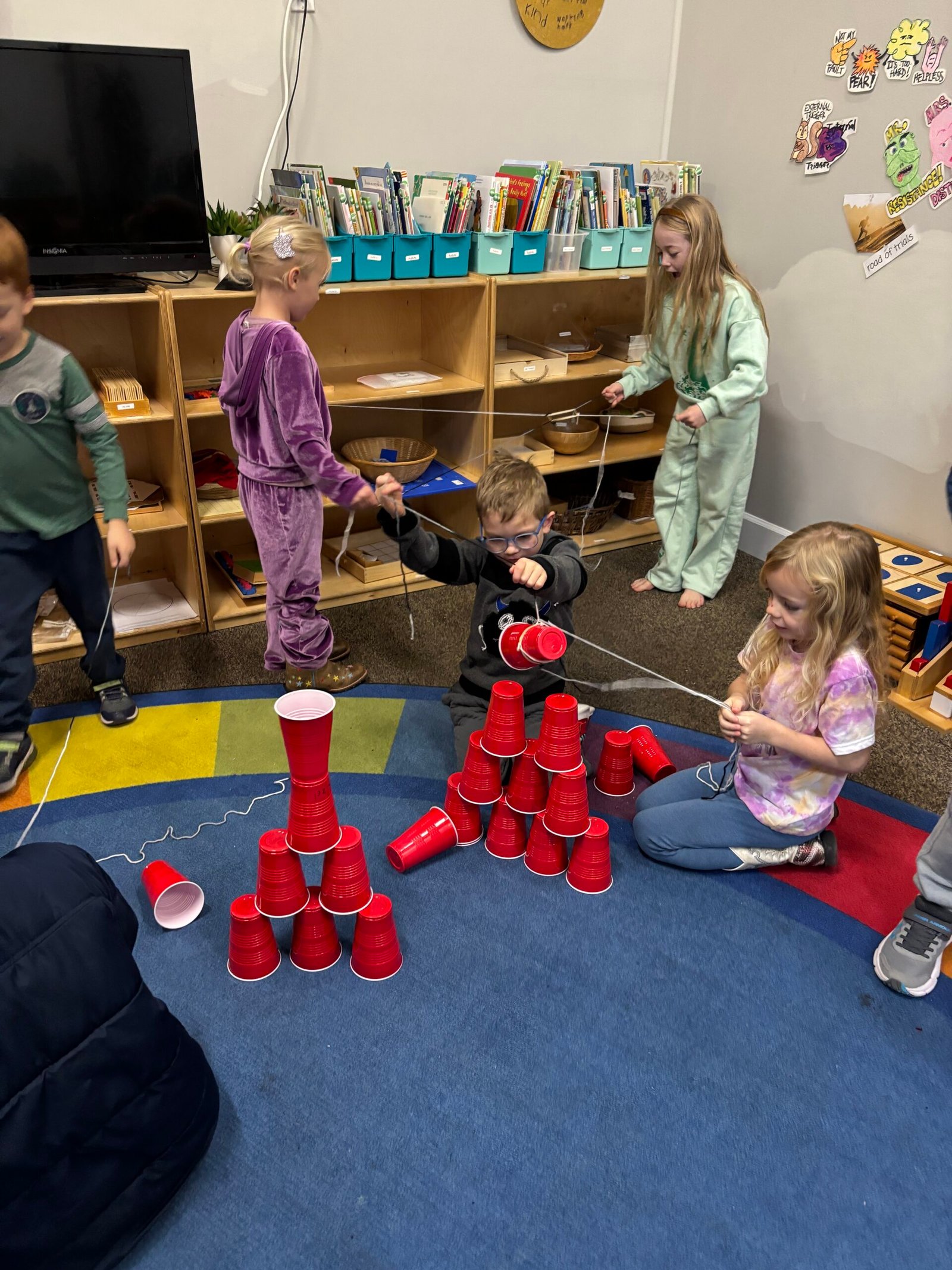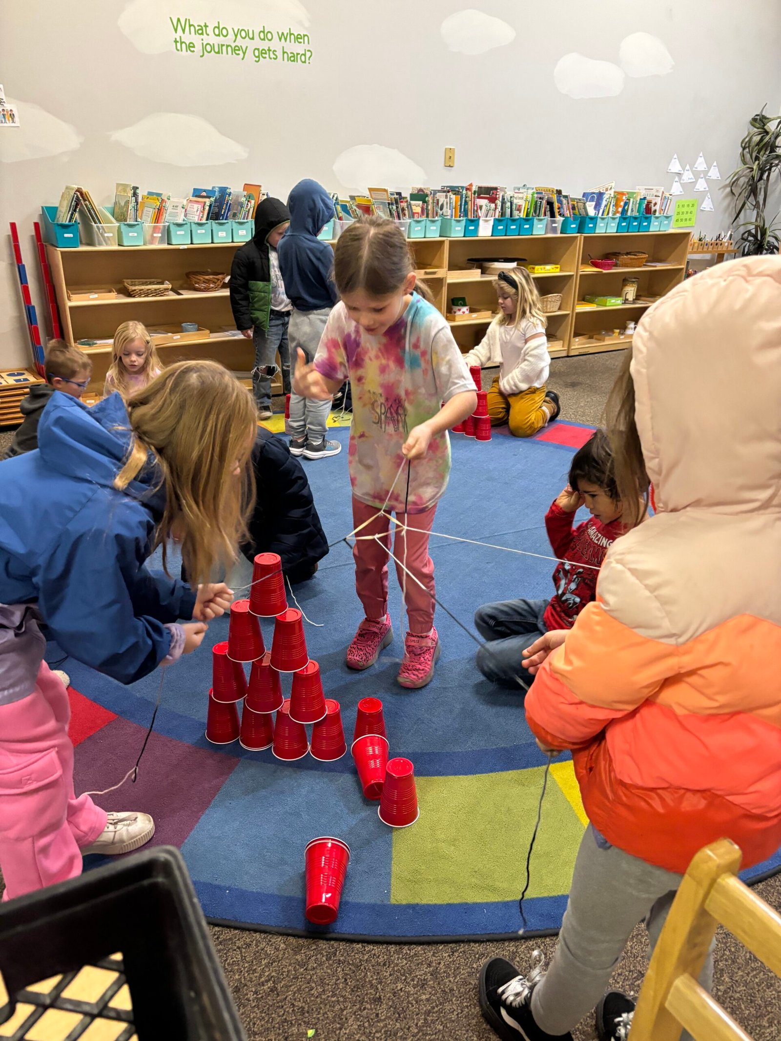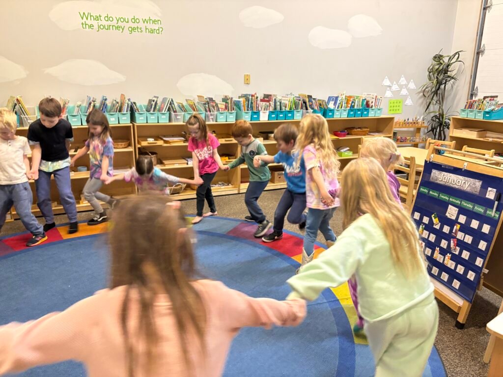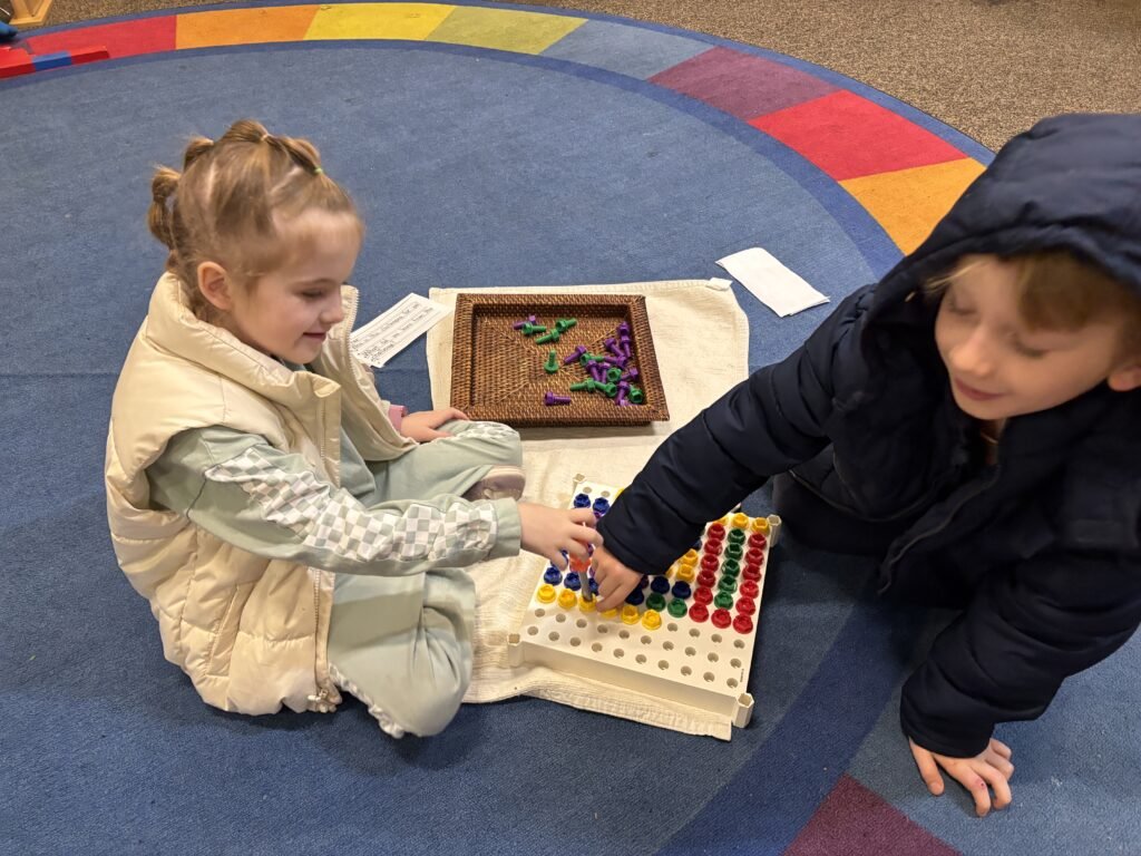 They supported each other during Montessori Work Cycle saying things like, “I can play this with you after you get your language done.” and “Tell me how this was challenging for you?”