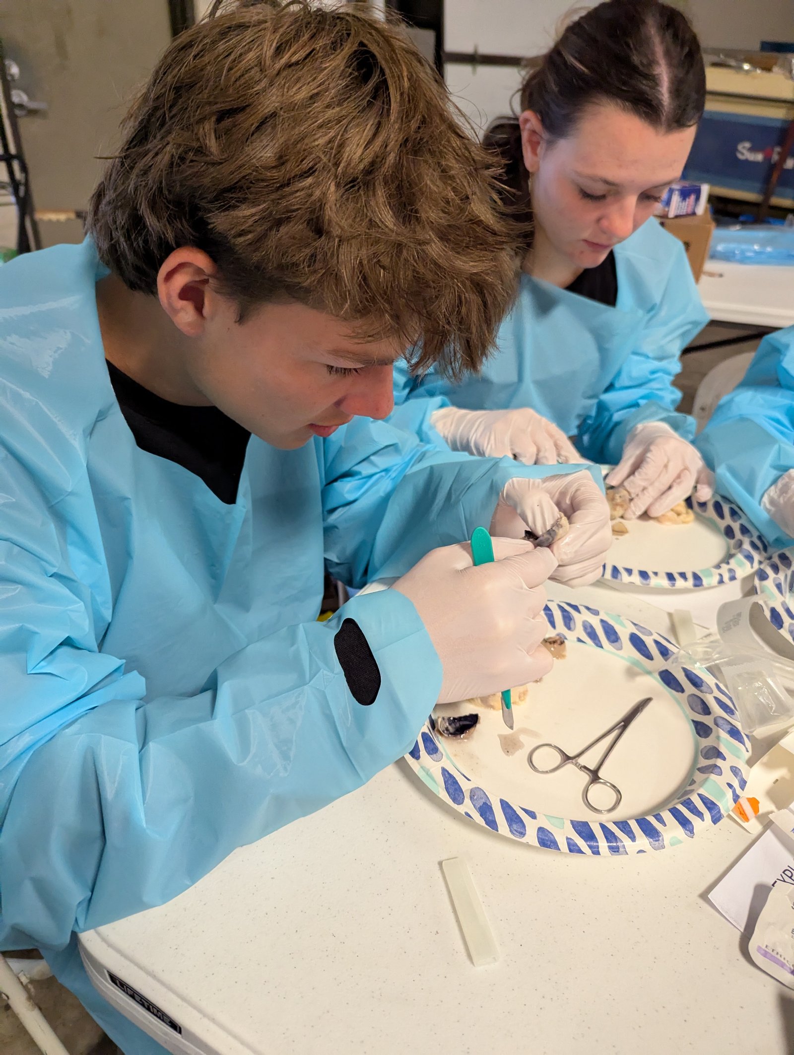 Heroes who had completed the Learn portion of the dissection got to participate in the actual eye dissection. It is so fun to see the full spectrum of interest. Many heroes who don’t do the dissection come in and observe, most heroes who do the dissection are fully engaged and interested throughout the process and then a few who are really passionate stay and explore all through lunch! Heroes learned how to suture, and each practiced a surgery – I saw several cornea transplants!
